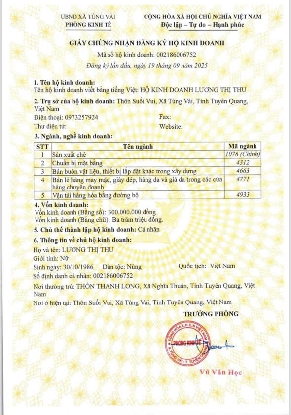 HỘ KINH DOANH LƯƠNG THỊ THU